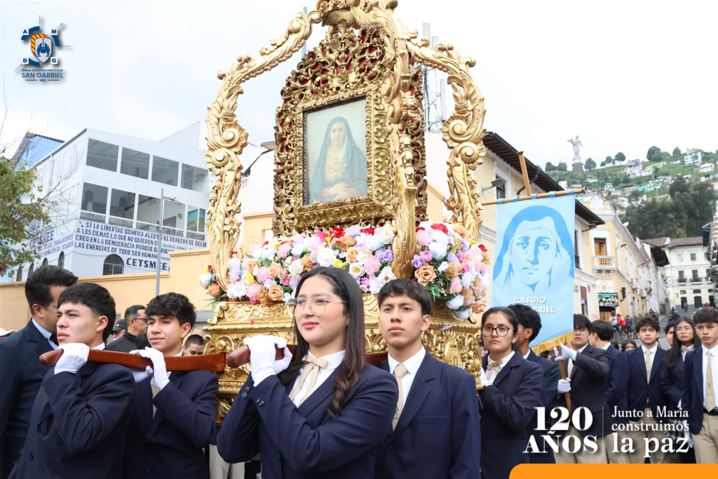 Inicio 120 Años del Prodigio: Sesión Solemne El 16 de abril de 2026, en el Teatro San Gabriel, se dieron cita colaboradores, autoridades e invitados para conmemorar los 120 años del Prodigio de la Madre Dolorosa. El evento comenzó con la Banda de Paz, de la UE. San Felipe Neri, institución hermana de la ciudad de Riobamba, que rindió honores
