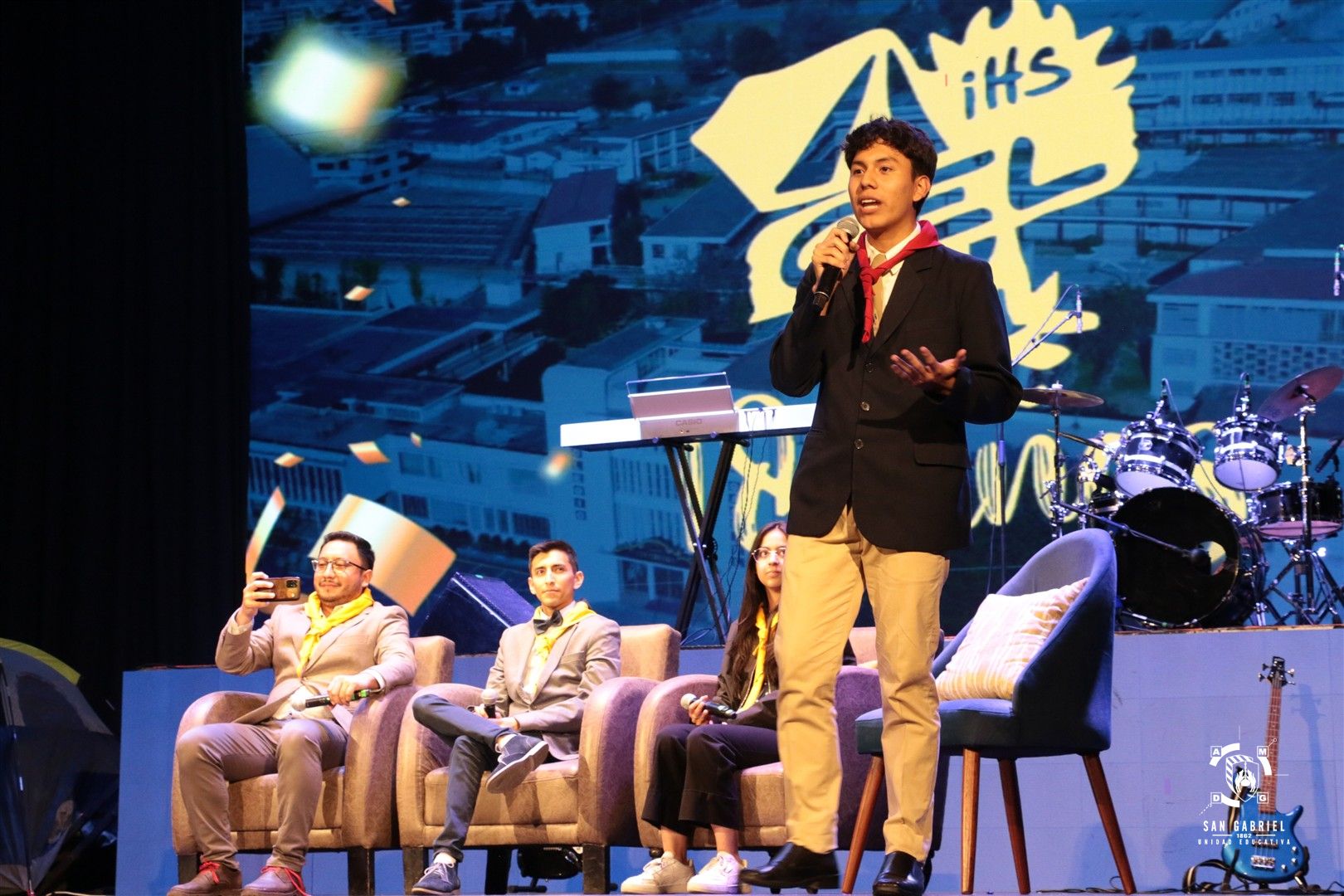 Posteriormente, se desarrolló un breve conversatorio con Luis Ochoa, Mateo Rivera y Samanta Moyano, exalumnos del plantel que formaron parte del grupo; compartieron cómo esta experiencia marcó su vida y su proyección profesional.