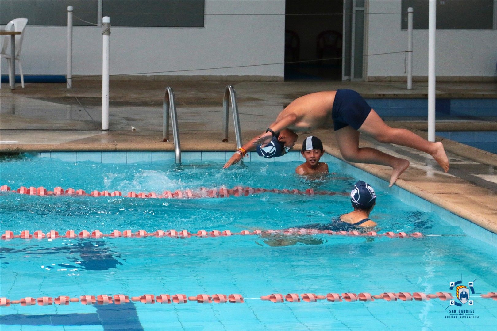 Bajo nuestro compromiso con la formación integral, todos los estudiantes gabrielinos participan en actividades de natación en diversos horarios. Estas clases son guiadas por docentes de amplia trayectoria en la especialidad y su evaluación forma parte del proyecto InnovAcción XXI, de transformación educativa.